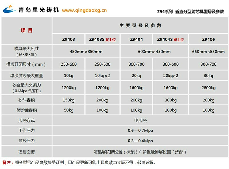 此系列冷芯盒射芯机采用垂直分型、上吹式设计,也是使用最为广泛、成熟的类型,最适合制作尺寸在300mm左右,重量20kg以下适用于芯盒顶面射砂的砂型。可根据用户需要,对应以上参数制作双工位型号。优点在于一体机身及控制器内整合两台完全独立的设备单元,两套系统可独立动作,分别设置不同的工作参数;对于两套芯盒的尺寸大小、行程时间、加热功率、射砂、固化时间等没有共同要求,具体使用时可单可双,操作灵活。主要意义在于客户仅用一台半的价格,可获得完全等于与两台设备的使用效果,且节省一名操作工人,在市场上均获得较好的使用评价。